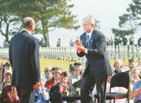 Las celebraciones del Día D sirvieron para rendir homenaje no sólo a los aliados que protagonizaron el desembarco sino también incorporar a los antiguos enemigos, Alemania, y a resaltar que los ejércitos aliados no fueron los únicos que derrotaron al nazismo. En este contexto y en presencia del presidente ruso Vladimir Putin, Chirac subrayó que las dificultades que atravesaron los “combatientes de la libertad” fueron las mismas que soportaron “en el frente Este, los heroicos soldados del Ejército Rojo, quienes habían abierto el camino progresivamente y de forma irresistible”. Los soldados británicos, belgas, holandeses, noruegos, griegos, checoslovacos, polacos, neocelandeses, canadienses y australianos también fueron evocados. Tampoco podía faltar la alusión al enemigo de ayer y al ejemplo del acercamiento franco-alemán. En Arromanches, el punto central de las 17 ceremonias oficiales organizadas en la costa normanda, el presidente francés saludó el aspecto “ejemplar” de la reconciliación entre los dos países y señaló que “no existe porvenir para el odio”. Chirac argumentó que desde hacia varias décadas, “los enemigosirreductibles del pasado construyen en común su presente. Miran juntos el porvenir, en el respeto de la Historia, de los combatientes, del sufrimiento y de la sangre derramada celebramos juntos la victoria de la paz y la democracia”. Durante una ceremonia francoalemana celebrada en el memorial de Caen, Schröder resaltó “la conciencia alemana” frente a la barbarie nazi, explicó que los alemanes también habían sido víctimas de la “dictadura nazi”y no evitó reconocer la responsabilidad de su país en la hecatombe. “Nosotros los alemanes –dijo– sabemos quién provocó la guerra. Reconocemos nuestra responsabilidad histórica y la tomamos en serio.” Recibido con aplausos calurosos, Schröder homenajeó a los soldados aliados y dijo que los “ciudadanos europeos no deben ofrecerles ninguna posibilidada la guerra, los crímenes de guerra o al terrorismo”.