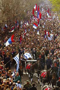 El sepelio del líder histórico de la izquierda uruguaya, quien pagó con la cárcel la oposición al golpe de Estado de 1973, dio lugar al reconocimiento oficial “por sus aportes a la vida democrática”, al recibir honores de ministro de Estado, cargo que nunca ocupó. El cuerpo de Seregni, fundador de la coalición de izquierdas Frente Amplio-Encuentro Progresista, fuerza política que por primera vez en la historia tiene la posibilidad de alcanzar el poder en las elecciones del 31 de octubre, fue sepultado en el Cementerio Central. En el texto de un decreto firmado por el mandatario Batlle y publicado ayer que ordenó los homenajes póstumos a Seregni como ministro de Estado, se fundamentó ese reconocimiento porque “fue una de las más relevantes figuras políticas del país”, y destacó su defensa de “la democracia y la pacificación nacional”.
