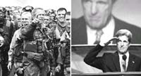 Después de graduarse de la Universidad Yale en 1966, donde se dice que fue un estudiante brillante, se alistó como soldado para la guerra de Vietnam, donde en cuatro meses de servicio fue condecorado por su heroísmo. Volvió con la convicción de que era una guerra equivocada. En 1971 declaró ante el Comité de Relaciones Exteriores del Senado y denunció la guerra como un “terrible error”. “¿Cómo pueden pedir a un hombre que sea el último en morir en Vietnam? ¿Cómo pueden pedir a un hombre que sea el último en morir por error?”, exclamó. Su activismo en contra de la guerra fue considerado como una traición por algunos de sus ex compañeros de armas. Uno de los spots más dañinos que marcó el duelo Bush-Kerry fue un corto realizado por un grupo de ex combatientes de Vietnam, los Veteranos de Lancha Patrullera de Vietnam por la Verdad, en el que acusaron a Kerry de haber agrandado sus actos de heroísmo para obtener sus condecoraciones. Después de su difusión el candidato cayó varios puntos en las encuestas.