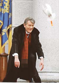 Yuschenko le dijo a la multitud que era necesario estrechar lazos con Occidente y la Unión Europea para la prosperidad de Ucrania: “Nuestro camino hacia el futuro es el de una Europa unida. Junto a la gente de Europa, pertenecemos a una civilización. Compartimos valores similares. Nuestro lugar está en la UE. No estamos más situados en la punta de Europa sino en el centro”. Su discurso puso de manifiesto la intención de asegurar que Ucrania siga los pasos de tres vecinos, Polonia, Hungría y Eslovaquia, todos países de la ex Unión Soviética que se han incorporado a la Unión. Con el anterior gobierno pro-ruso de Leonid Kuchma había poca chance de que Ucrania fuera elegido como miembro tanto de la UE como de la OTAN. Pero Yuschenko dijo que su nueva administración aplicará reformas democráticas y económicas para que Ucrania sea un atractivo futuro miembro. También prometió acabar con la corrupción rampante, la ilegalidad, y el abuso a los derechos humanos que se han convertido en flagelos comunes durante los 10 años de la gestión de Kuchma.
