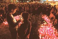En otros muchos colegios se aprovechó la jornada para lanzar mensajes de paz y solidaridad con las víctimas. Por ejemplo, en el Alhucema de Fuenlabrada se confeccionó un crespón blanco gigante con 192 lazos negros que se colgó en el patio. Hortensia, la psicóloga del centro, colgó un cartel elaborado por los estudiantes, con firmas de muchos de ellos, en uno de los cristales de las escaleras de entrada a Atocha, junto al santuario improvisado.