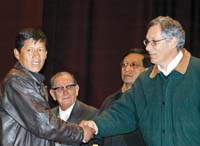 “Mi primera acción como presidente ha sido preocuparme por los conflictos en la ciudad de El Alto”, abrió el juego Rodríguez Veltzé frente a un público compuesto por un centenar de dirigentes alteños y sentado junto a Abel Mamani –presidente de la Fejuve–, Edgar Patana -de la central obrera–, Braulio Rocha –de los Gremiales, como se conoce aquí a los comerciantes informales–, y Gualberto Choque –de la federación de campesinos de La Paz–. Luego hicieron uso de la palabra los dirigentes sindicales, en medio de gritos de “Jallalla (viva) la hoja coca” y la tradicional pregunta-repuesta: “¿Qué queremos?... ¡Nacionalización!”. “No nos revelamos para destruir este país, nos revelamos para sacarnos de encima a esta peste que lo gobierna y son quienes realmente lo están destruyendo”, dijo Choque en su intervención, señalando que “no somos irracionales como quieren hacernos quedar en algunos medios”. En una mezcla de confianza y advertencia, los alteños le dijeron al presidente “creemos que usted no se va a equivocar” (como Carlos Mesa) y esgrimieron la tregua declarada como muestra de la predisposición al diálogo de esta “ciudad combativa que expulsó al sanguinario Sánchez de Lozada” y corrientemente se percibe a sí misma como “defensora de la nación”.