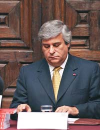 Ferrero y Bruce, dos personajes clave para el gobierno de Toledo, se han puesto a la cabeza de la rebelión al interior de PP, que rechaza la designación del nuevo canciller. Ambos enfrentaron duramente en las últimas semanas a Olivera por el apoyo que éste le dio a una decisión del gobierno regional del Cuzco, controlado por el partido del nuevo canciller, de legalizar el cultivo de la hoja de coca. Otro de los secretarios generales colegiados de PP, el congresista Jesús Alvarado, le ha pedido públicamente a Olivera que renuncie a su reciente nombramiento “para recuperar la tranquilidad política”. La reunión en Palacio de Gobierno comenzó poco después del mediodía y continuaba por la noche. Ferrero fue el último en llegar y el primer en irse. Estuvo un par de horas en el encuentro con Toledo y la cúpula de PP y no dio declaraciones sobre lo tratado en la cita.