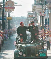 “Fidel, tú eres un genio malévolo y yo soy un acaudalado petrolero”, ironizó el presidente venezolano, Hugo Chávez, mientras realizaba su programa dominical Aló Presidente, pero esta vez desde Cuba y junto a su par y amigo, Fidel Castro. Como no podía ser de otra manera, el objeto de sus bromas y sus críticas no fue otro que “el vecino del norte”. Contestando a las acusaciones del ministro de Defensa estadounidense, Donald Rumsfeld, de la semana pasada, de desestabilizar la región, Chávez atacó: “En verdad son ellos los desestabilizadores de la comarca y nos llaman a nosotros desestabilizadores, pero ellos son, con su empeño hegemónico, con sus políticas neoliberales, sus dictaduras militares, sus golpes de Estado, sus invasiones, sus atropellos, sus medios de comunicación... con los lacayos de cada o de muchos países”.