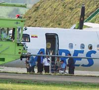 No eran comandos suicidas ni hablaban una lengua extranjera: un hombre en silla de ruedas y su hijo secuestraron un avión de pasajeros en Colombia y causaron al presidente Alvaro Uribe un dolor de cabeza de realismo mágico. Porfirio Ramírez Aldana, de 42 años, y Businhawer Ramírez Reinoso, de 23, amenazaron con pistolas y granadas a los veinte pasajeros y a los cinco tripulantes del avión de la empresa Aires, que venía del sur del país. El secuestrador pedía un resarcimiento al Estado porque lo consideraba culpable por su invalidez. En el área militar del aeropuerto de Bogotá mantuvieron reuniones con funcionarios gubernamentales y un cura hasta que los captores, después de siete horas, depusieron su actitud, sin que se supiera a qué acuerdo llegaron.