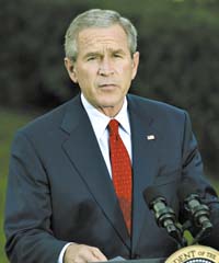 Después del escándalo por el procesamiento de Lewis Libby, segundo del vicepresidente Dick Cheney, en relación con el caso de la espía Valerie Plame, la mejor idea que encontró George W. Bush (foto) fue volver a hacerse el sordo y hablar de lo único que le gusta: la guerra. “La mejor forma de honrar el sacrificio de nuestros soldados caídos es que completemos la misión y ganemos la guerra”, dijo en su alocución radial al pueblo estadounidense. Bush agregó que “nuestra seguridad está vinculada directamente a un Oriente Medio que crezca en libertad y en paz”. Las declaraciones de W. se producen cuando las encuestas muestran que la aprobación a su gestión es menor al 40 por ciento, y más del 60 por ciento piensa que fue un error invadir Irak.