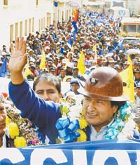 El acuerdo concluye en diciembre de 2006 y Estados Unidos lo quiere sustituir por un Tratado de Libre Comercio (TLC) con el área andina. Perú ya lo firmó y las conversaciones con Colombia y Ecuador van a buen ritmo. Bolivia, en cambio, se quedó al margen. Ahora, con las elecciones, todo está en el aire. Los dos principales candidatos encarnan las dos visiones antagónicas que dividen no ya El Alto, sino toda Bolivia: la apuesta por el libre mercado o el retorno a la economía estatalizada. Evo Morales, indígena aymara, dirigente del sindicato cocalero y favorito en las encuestas, sostiene un discurso radicalmente antiliberal. Pisándole los talones, Jorge Quiroga, empresario de centroderecha, fue el artífice de la firma del acuerdo con Estados Unidos en 2002.