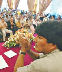 Uno de los temas centrales del ampliado fue la fuerte interpelación ética al heterogéneo conjunto que conformará la numerosa bancada masista. El encargado de realizarla fue García Linera: “Ustedes son soldados de los movimientos sociales que marcaron la agenda que este Parlamento tiene que cumplir: Asamblea Constituyente para que este país se transforme radicalmente y nuevo modelo económico. Ustedes tendrán que aprobar la nacionalización de los hidrocarburos. De manera inmediata tenemos que dar las grandes leyes para que la historia de Bolivia cambie. Que nadie crea que llegó el tiempo del peguismo (cargos por acomodo), todos debemos dar una señal clara de que no estamos acá para enriquecernos. Si no cumple con esto, la Asamblea Constituyente con poderes soberanos (convocada para julio de 2006) sabrá qué hacer con este Parlamento”. Un dato: Bolivia formó parte ayer de los 19 países a los que el FMI condonó la deuda. Horas antes, Evo Morales había anticipado algunas medidas de gobierno, entre las cuales figuran la eliminación paulatina de las superintendencias de regulación sectorial y “el cambio del viejo sistema de cuoteo político” de instituciones como la Corte Nacional Electoral (CNE) y la Corte Suprema de Justicia. Sigue pendiente la conformación del gabinete.