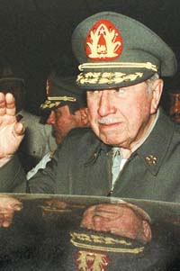Pinochet con los dedos sucios y de frente y perfil