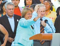 “Diré lo que pienso y haré lo que digo, palabra de mujer”, dijo la ex ministra de Salud y Defensa del gobierno de Ricardo Lagos en el cierre de su campaña. Y lo dijo alguien que sabe que la cuestión de género no es irrelevante en una sociedad con visos de machismo. Richard, de 34 años, admite que hay machismo, pero que él votará por una mujer que puede ser de igual modo simpática y firme. Vestida de traje verde agua, de un lado la acompañaban sus hijos y del otro su equipo más cercano: Andrés Zaldívar y Sergio Bitar, que ocuparán alguna cartera si la Concertación gana un cuarto mandato. Bachelet lo afirma: “Ganaremos el próximo domingo, seré la primera presidente mujer de Chile”. Estaban a su lado también el ex presidente Patricio Aylwin, a quien la candidata destacó en el camino realizado y la ex presidenciable Soledad Alvear.
