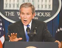 La impactante victoria de Hamas ha provocado un conflicto entre los dos principios del enfoque del presidente Bush hacia Medio Oriente: su negativa a aprobar el terrorismo y su determinación en promover la democracia en toda la región. El dilema era evidente en la reacción inicial del presidente de Estados Unidos ayer, ante una conferencia de prensa convocada con cierto apuro donde dejó la puerta abierta para trabajar con el gobierno de Hamas, a condición de que éste renuncie al terrorismo y formalmente reconozca el derecho de Israel a existir.