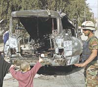 Siguiendo con un domingo muy sangriento, la jornada de ayer estuvo repleta de atentados y ataques contra las fuerzas estadounidenses, sus pares iraquíes y civiles aliados. El atentado que causó más muertos fue un ataque suicida en un autobús en el barrio de Kadhimiya, en el norte de Bagdad, que provocó 12 víctimas fatales, además de 9 personas heridas. En otro ataque en la ciudad capitalina, cuatro obreros murieron y otros 15 resultaron heridos cuando una bomba explotó en la plaza en la que todas las mañanas los trabajadores se reúnen para pedir trabajo. En otros atentados en Bagdad, nueve transeúntes fueron heridos y murió un camionero que trabajaba por encargo para el ejército estadounidense.
