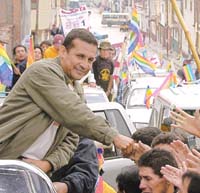 A menos de un mes de las elecciones presidenciales, el ex militar nacionalista y populista registró ayer un empate técnico con la derechista Lourdes Flores, cuya campaña empieza a temblar.