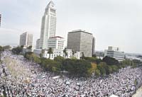 En una marcha que dejó largamente atrás las manifestaciones por los derechos civiles o contra la guerra de Vietnam, entre 500.000 y un millón de personas colmaron Los Angeles contra un proyecto de ley que convertiría la inmigración ilegal de hispanos en delito federal.