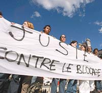 “Ahora, dado que se va a ver una propuesta de ley, son los diputados los que van a hacer la ley, no será más el gobierno. Se siente que nuestro interlocutor no será el primer ministro, serán los diputados de la UMP, cuyo patrón es Sarkozy”, explicó ayer el secretario general de la confederación sindical CFDT, François Chereque, a pocas horas de la huelga convocada para mañana que se espera reúna a más de tres millones de personas. Según adelantó la Intersindical, que agrupa a las principales centrales obreras y estudiantiles de país, la medida de fuerza incluirá a empleados públicos, personal escolar, de correos y al sector de energía; mientras los estudiantes realizarán tomas de universidades y escuelas secundarias. En tanto, ayer unas dos mil personas marcharon por las calles de París para repudiar el cierre de las universidades. Los organizadores de la protesta, cinco asociaciones cercanas a la derecha gubernamental, se declararon en desacuerdo con las medidas de fuerza que están realizando los sectores sindicales y estudiantiles, principalmente, aunque afirman que no apoyan el CPE.