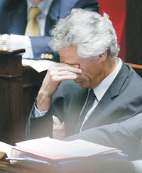 Al parecer, cuando empezó a tejerse la trama Clearstream, el primer ministro contaba con que la “prensa aliada” publicara la historia con el nombre de Sarkozy. Ello, sin embargo, no ocurrió. El semanario Le Point sacó la historia de las listas y las cuentas bancarias sin mencionar los nombres que figuraban en ella. Ese semanario de derecha es ahora uno de los más aguerridos adversarios de Villepin. Su última edición, en cuya tapa el jefe de Gobierno aparece fotografiado sólo bajo el título “Watergate”, es una auténtica declaración de guerra. Peor aún, su director, Franz-Olivier Giesbert, lleva la espada en la cruzada contra Villepin y Chirac. Francia conoce una “chiracofobia” galopante. El jefe del Estado, cuyo apoyo al premier depende de cómo éste consiga evitar que el escándalo lo salpique a él, es objeto de las burlas más crueles que se hayan escuchado sobre un presidente. “Fin de reino lamentable”, “la agonía del poder”, “fin de mandato en el barro”, epítetos sin concesiones.