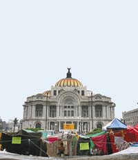 Por lo pronto, desde la tarde del domingo 30 de julio, el candidato de la izquierda y varios miles de personas provenientes de todo el país –incluidos cientos de militantes, legisladores electos y dirigentes del Partido de la Revolución Democrática (PRD), del Partido del Trabajo (PT) y de Convergencia por la Democracia (CD), integrantes de la coalición Por el Bien de Todos que lo postuló– mantienen 47 campamentos permanentes que cerraron la circulación de vehículos a lo largo del céntrico Paseo de la Reforma –una de las más importantes avenidas que cruza el corazón financiero– y se internan por el centro histórico de la Ciudad de México hasta el Zócalo, la plaza donde se encuentra la sede oficial de los gobiernos de la república y de la capital mexicana, como una medida de presión para que el Tribunal Electoral limpie la elección presidencial y ordene volver a contar voto por voto, casilla por casilla.