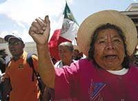 En tanto, la presión por una solución abarca ya no sólo a las instancias políticas y a los empresarios locales (que estiman las pérdidas del comercio local en más de 100 millones de pesos argentinos y en varios miles los puestos de trabajo perdidos), sino a voces de intelectuales que consideran inadmisible que se prolongue el conflicto y, peor aún, se extienda a la capital del país, luego de que ayer salieron los primeros contingentes de una marcha hacia la Ciudad de México en la que participan profesores de la Sección 22 del Sindicato Nacional de Trabajadores de la Educación (la organización obrera más grande de Latinoamérica), que inició la movilización hace cuatro meses con reivindicaciones laborales, y de la APPO, que se sumaron después para exigir la renuncia del gobernador Ulises Ruiz, convertida hoy en la condición fundamental para disolver la crisis. Así, la capital del país podría vivir nuevamente una etapa de bloqueos como los realizados por la coalición Por el Bien de Todos en protesta por lo que llamó un fraude electoral en contra del candidato presidencial de la izquierda, Andrés Manuel López Obrador, algo que aterra a los comerciantes de la Ciudad de México. El jefe de Gobierno capitalino, Alejandro Encinas, cuestionó al gobierno federal por permitir que llegue el conflicto al Distrito Federal. Se prevé que la marcha arribe a la Ciudad de México el 3 de octubre, un día después de recordarse la masacre de estudiantes en Tlatelolco, en 1968, a manos del ejército, y que inició más de una década de guerra sucia en México.