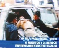 Los enfrentamientos entre trabajadores de la minería estatal y cooperativistas mineros en la localidad minera de Huanuni (50 kilómetros al sudeste de Oruro) alcanzaron ayer una inusitada violencia y se cobraron la vida de unos 11 operarios y personas ajenas al conflicto, según informaron fuentes periodísticas desde el escenario de los hechos. A ese saldo se suman unos 50 heridos. Los medios de comunicación describían una situación de extrema tensión, con detonaciones de dinamita y otras manifestaciones de violencia. Aparentemente los choques se produjeron cuando los cooperativistas (microempresarios privados que explotan yacimientos a destajo) intentaron tomar por asalto zonas de la mina pertenecientes a la empresa estatal Corporación Minera de Bolivia (Comibol), lo que fue resistido por sus trabajadores. En Huanuni se encuentra el cerro Posokoni, el yacimiento de estaño más rico del mundo, cuya explotación se convirtió en motivo de disputa entre ambos bandos de la minería.