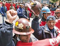 El fantasma de los muertos de la semana pasada en la localidad minera de Huanuni –provocados por choques entre mineros estatales y cooperativistas– sobrevoló la conmemoración del 24º aniversario de la recuperación de la democracia en este país andino. A ello se sumó una extraña versión sobre un golpe de Estado programado para hoy. Al empantanamiento de las negociaciones entre ambos bandos de la minería para definir la forma de explotación del cerro Posokoni –motivo de la “guerra” del jueves y viernes pasados– se sumó una marcha de protesta convocada por la Central Obrera Boliviana (COB) y la Federación Sindical de Trabajadores Mineros de Bolivia (Fstmb) reclamando juicio de responsabilidades para los ministros del gabinete de Evo Morales que no lograron evitar la masacre, “pese a las advertencias, en la madrugada, realizadas por la COB” y la indemnización de las víctimas. El viceministro de Coordinación con los movimientos sociales, Alfredo Rada, respondió que no corresponde indemnización porque no fue el Estado el que provocó las muertes.