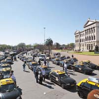 Algunos senadores prefieren hablar de “coincidencias objetivas”, en vez de una relación directa como la que describe el ministro. En otras palabras, reconocen que no hay un complot organizado para desestabilizar al gobierno de Tabaré Vázquez, aunque sí un encuentro de intereses entre los partidos de la oposición, algunos sectores castrenses ligados a la dictadura y los grupos de poder económico, como por ejemplo, los productores agropecuarios que ayer apoyaban el paro de camioneros. Esta comunión de intereses está creando entre el oficialismo una sensación de acoso constante al gobierno progresista. Por eso, la PIT-CNT saldrá hoy a las calles de Montevideo desde las diez hasta las 15 (una hora menos que Argentina). La intención de la central es contrarrestar el impacto social y político de la huelga de los camioneros. Ayer esta estrategia le dio resultado. Durante la tarde, unos mil taxistas se manifestaban cerca del Congreso, cuando de pronto los dirigentes del gremio aparecieron y decidieron terminar la medida de fuerza. La explicación que dieron fue que sus demandas habían sido “malinterpretadas”. Los que estuvieron allí aseguraron que no quisieron “quedar pegados” a la patronal de los camioneros y a su enfrentamiento con el gobierno. Además, destacó Puig, los dirigentes nunca tuvieron el apoyo de los trabajadores taxistas.