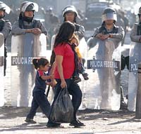 Ayer, la Policía Federal Preventiva seguía ocupando el centro de la ciudad de Oaxaca, mientras los militantes de la APPO se concentraban en un parque cercano al Zócalo y colocaban nuevas barricadas en calles adyacentes. La noche del lunes se registraron varios enfrentamientos y ayer se confirmó que al menos una persona murió a manos de la policía, atravesado por una granada de gas lacrimógeno.