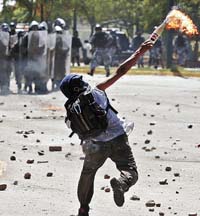 EL MUNDO › CON PALOS Y PIEDRAS, LOS UNIVERSITARIOS REPELIERON A LOS POLICIAS FEDERALES