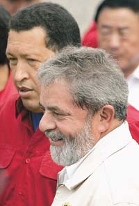 Veinte días antes de las elecciones en Venezuela, Luiz Inácio Lula da Silva, recién reelegido presidente de Brasil, aprovechó la inauguración conjunta de un segundo puente sobre el río Orinoco para dar un fuerte respaldo a la política social de Hugo Chávez –“un gobierno que se preocupa por los pobres”–. Además, comparó las críticas periodísticas que recibe el mandatario venezolano con las que recibió en Brasil durante la campaña electoral. Los dos presidentes recorrieron el puente, de 3,7 kilómetros de longitud, a bordo de un vehículo militar de fabricación venezolana, antes de proceder a los actos protocolarios de la inauguración. Lula, que prescindió del discurso que llevaba escrito y optó “por hablar de sus sentimientos”, dijo que cada vez está más convencido de que ningún país latinoamericano podrá ganar en solitario la batalla del progreso y el desarrollo, sino que será imprescindible la integración.