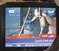 En las imágenes globalizadas, justo antes de que sea ejecutado Saddam Hussein, los testigos le gritan el nombre de un líder rival chiíta, Moqtada al Sadr, en medio de burlas e insultos. Eso provocó la ira de los sunnitas, facción a la que pertenece Saddam, y la de los árabes de otros países.