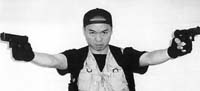 En una de las fotos, Hui aparece con las dos armas que utilizó para cometer la masacre, una pistola nueve milímetros y una calibre 22, vestido con mitones negros, un chaleco militar y una gorra de béisbol con la visera hacia atrás.