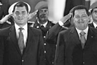 La gira latinoamericana del presidente ecuatoriano culminó con pompa y honores en el Palacio Miraflores. Mientras la prensa opositora taladraba con el supuesto apoyo de Chávez a las FARC, Correa desmentía las acusaciones de Uribe.