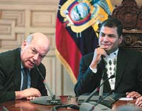 La comisión creada por la OEA para analizar el reciente conflicto entre Colombia y Ecuador se reunió ayer con el gobierno de Quito. Después de que se resolviera la crisis diplomática entre ambos países, el presidente ecuatoriano Rafael Correa le dio las gracias al secretario general del organismo, José Miguel Insulza. “Queremos agradecerte, Miguel, la prontitud con que la OEA atendió nuestro pedido de convocar al Consejo Permanente, de ratificar la inviolabilidad de los territorios nacionales y la soberanía de los Estados”, señaló. La misión encabezada por Insulza visitará hoy el sitio donde el ejército colombiano asesinó a 25 miembros de las FARC en suelo ecuatoriano y de-sató la crisis entre Quito y Bogotá. Por su parte, Venezuela ordenó retirar las tropas que había enviado a la frontera con Colombia, mientras que Ecuador las mantuvo.