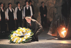 Acompañado por su esposa Marisa Leticia y por el presidente israelí y Premio Nobel de la Paz, Shimon Peres, Lula participó en una ceremonia oficial en la denominada Sala de la Memoria. La sala tiene un techo de hormigón y en el suelo están escritos los nombres de los 22 campos de exterminio nazi durante la Segunda Guerra Mundial.