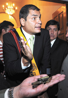En un dramático recuento de los hechos del jueves en Quito, el presidente Rafael Correa reveló ayer ante los cancilleres de la Unión de Naciones Suramericanas (Unasur) en Quito que, en la revuelta policial que causó una crisis política ya superada, hubo conspiración e infiltrados. Para comenzar, dijo estar “congratulado de que todos los representantes de América latina tengan tan claro que no se trató de un reclamo salarial, como dice alguna prensa corrupta de Ecuador, sino de una conspiración golpista”. Además habló de que estos “conspiradores permanentes no nos pueden vencer en las urnas y quieren quitarnos la vida” y denunció intentos de asesinato en su contra y de sus ministros para “llegar a una guerra civil cuyas consecuencias eran incalculables”. Se declaró “destrozado” frente a las muertes ocurridas “por culpa de una aventura de desquiciados criminales” y adelantó que habrá un fuerte proceso de depuración de filas policiales y de investigación de los hechos, “que seguramente serán denunciados a la comunidad internacional como persecución política”. Calificó la revuelta de los uniformados “como un pretexto”. “Estos asesinos son potenciales grupos paramilitares”, agregó, para luego ratificar que “los cabecillas van a ser identificados y fuertemente sancionados; no habrá ni perdón ni olvido ni impunidad”, enfatizó.