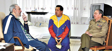 El presidente de Venezuela, Hugo Chávez, recientemente operado en Cuba de un absceso pélvico, apareció ayer mostrándose recuperado en fotos de la prensa local junto a sus aliados y amigos Fidel y Raúl Castro –actual presidente de la isla–, quienes lo visitaron en un hospital de La Habana.