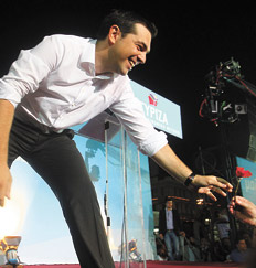 La coalición de la izquierda radical griega cerró anoche su campaña electoral con un acto multitudinario en el centro de Atenas. Syriza enfrenta este domingo en las urnas al otro partido que lo iguala en intenciones de voto, la alianza conservadora de Nueva Democracia liderada por Antonis Samaras. Sin embargo, los sondeos no muestran una tendencia determinante a favor de uno u otro, tanto más cuanto que ambos, Samaras para Nueva Democracia y Alexis Tsipras (foto) para Syriza, modificaron sus respectivas posiciones respecto de la permanencia de Grecia dentro de la Zona Euro y el futuro del paquete de austeridad impuesto por la Unión Europea, el Banco Central Europeo (BCE) y el Fondo Monetario Internacional a cambio de la ayuda que recibió Atenas.