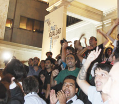 Poco después, y en mayor cantidad, los militantes de Unidos y Organizados llegaron hasta la Casa Patria Grande. Dentro y fuera del local, los jóvenes cantaban cada vez más fuerte “Vengo bancando este proyecto”, “Si lo tocan a Maduro, qué quilombo se va armar” o “Chávez, Chávez con Perón, el pueblo con Maduro por la liberación”.