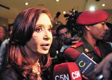 La presidenta Cristina Fernández de Kirchner dijo anoche que la movilización popular de ayer en Caracas “no hizo más que ratificar un liderazgo histórico del presidente Chávez” en su país y en la región. “Como le dije a un colega de ustedes en la capilla ardiente, el comandante Chávez, el compañero y amigo, ha entrado definitivamente en la historia. Creo que hombres como Chávez no mueren, se siembran”, declaró a la prensa en el lobby del hotel. La Presidenta citó palabras de un manifestante, según el cual “Bolívar fue un liberador de pueblos y Chávez un liberador de mentes”, y agregó que “uno de los grandes méritos de Hugo fue romper una estructura cultural y mental de muchísimos compatriotas que creían que no era posible otra Venezuela”.