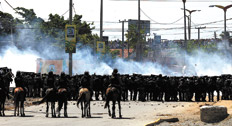 La policía reprimió ayer una manifestación de unas 15 mil personas, pocas horas antes del inicio del partido entre Brasil y México, en la ciudad de Fortaleza por la Copa de las Confederaciones. La policía del estado Ceará, donde se encuentra localizada la ciudad, informó que los agentes dispararon balas de goma, gas lacrimógeno y gas pimienta para dispersar a los manifestantes, que habían superado violentamente un control policial en una calle por la cual se accede al estadio Arena Castelao.