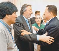 @“Un paso más en la integración de esa Sudamérica que soñamos libre y unida en todo sentido.” Así había calificado el presidente Hugo Chávez el triunfo de Evo Morales, incluso antes de conocerse los primeros datos. América latina se unió al entusiasmo venezolano y salió a celebrar la “contundencia” de la victoria –según palabras del mandatario chileno Ricardo Lagos– del líder cocalero. Pero no todos saludaron tan enérgicamente el resultado electoral. La secretaria de Estado estadounidense, Condoleezza Rice, se adelantó a advertir que van a “mirar el comportamiento del gobierno de Bolivia para determinar el curso de las relaciones” bilaterales.