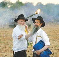 Hubo pocos espectáculos tan extraños como el de ayer, cuando llegó al frente un autoproclamado Tanque Mitzvah, uno de los once que le gusta enviar a Chabad, una secta judío ortodoxa, a las zonas de guerra. En realidad el “tanque” es un coche repleto de slogans como “Pureza familiar” y “Ame a su compañero judío”. Uno del grupo, Chaim Nevo de 50 años, dijo que ellos habían llegado para “salvar a los soldados y darles poder”, proclamando que la guerra había comenzado porque el gobierno había abandonado partes de una “Israel más grande”. “El Torá dice que si alguien está tratando de matarte, hay que matarlo primero”, dijo. Regresando ayer por la zona fronteriza hacia el oeste, se podían ver las banderas amarillas de Hezbolá en dos o tres puntos a lo largo de la cadena decerros en el sur, incluyendo en el borde de Maroun ar Ras, de donde las fuerzas israelíes aparentemente no se han dignado a sacarlos.