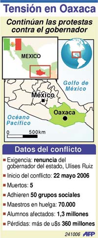 El conflicto que enfrenta a maestros y organizaciones sociales en la ciudad mexicana de Oaxaca lleva más de cinco meses. En ese tiempo hubo múltiples asambleas, visitas de senadores nacionales, represión, muertos y amenazas de uno y otro lado. Los maestros de la sección 22 del Sindicato Nacional de Trabajadores de la Educación (SNTE) se encontraban en huelga desde mayo de este año en reclamo de un aumento de sueldo, pero recién a partir de junio se produce la escalada del conflicto.