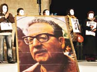 Hace 33 años y algo más, el muerto militar ordenó bombardear el palacio presidencial chileno, ganándose el mote de asesino y erigiéndose como un icono mundial de la tiranía y la traición. Así, con la ahora blanca Moneda, como panorámica de fondo, los miles de participantes se fueron fundiendo con las pancartas, lienzos, flores y banderas –en su mayoría rojas y con una hoz y un martillo impresos– y las remeras con el rostro de Allende, junto a los insultos contra el dictador.