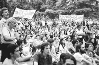 “Estamos los que queremos decidir medidas concretas y están los que buscan que la asamblea apruebe medidas más abstractas, como convocar a una asamblea general constituyente”, dijo Liliana Mondino, de Colegiales. “Yo prefiero que aquí haya poca política y que se decida un plan práctico de acciones. El tema de las consignas es denso, pero mi impresión es que los vecinos que nos queremos ocupar de la cosa pública no nos vamos a cansar fácilmente”.