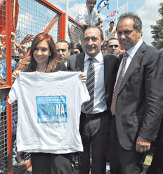 Cristina Fernández de Kirchner inauguró la ampliación de una fábrica de fideos. Respaldó al candidato del Frente para la Victoria, Luis Vivona, quien tratará de desbancar de la intendencia de ese distrito al duhaldista Jesús Cariglino.