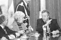 Los integrantes de la Comisión por la Memoria se sentaron ayer en una gran mesa ovalada en el Salón Sur de la Casa de Gobierno junto al Presidente, el jefe de Gabinete, Alberto Fernández; el ministro del Interior, Aníbal Fernández, y el secretario de Derechos Humanos, Eduardo Luis Duhalde. A pesar del tamaño de la mesa, cabían justo a su alrededor, ya que la comisión acudió prácticamente en pleno, lo que suma cerca de veinte personas. Fueron para apoyar la voluntad oficial de anular las leyes de Obediencia Debida y Punto Final y para conversar sobre otros temas de interés para el organismo, como las políticas públicas de memoria colectiva, la búsqueda y apertura de archivos referidos a la represión ilegal, la vigencia de los derechos económicos, sociales y culturales y el desprocesamiento de los presos sociales.