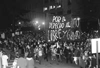 Fueron por lo menos dos horas de una caminata que a veces se convertía en saltos, que provocaba aplausos de los balcones y una sorpresa muda de quienes vieron convertirse al elegante boulevar Oroño en un río de mujeres dispuestas a hacerse ver y escuchar. Eran tantas que la misma bandera que reclamaba el derecho al aborto libre y gratuito, que parecía inmensa en el salón de actos de la Facultad de Ciencias Económicas, de pronto se había empequeñecido. Qué podía importar. El reclamo atravesaba las ocho cuadras de la columna, iba de boca en boca y se anotaba en los pañuelos que reclamaban la despenalización del aborto, el derecho a la anticoncepción y a decidir cuándo y cuántos hijos tener, o no. Los triángulos de tela que siendo blancos se convirtieron en un símbolo de la resistencia contra el terrorismo de Estado y la impunidad, ahora sirvieron, teñidos de verde, para simbolizar una misma demanda sobre las pecheras de las organizaciones populares, las banderas de los lugares de origen o cualquier otro distintivo que servía para agrupar a los colectivos de mujeres. Fueron la señal más visible de que, más allá de los reclamos sectoriales de cada grupo de mujeres, el derecho a decidir sobre el propio cuerpo se transformó en una demanda transversal.