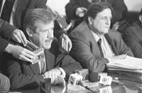 Luego de que la comitiva peronista fuera rechazada por los radicales, fueron algunos boinas blancas independientes los que intentaron convencer al bloque oficial de la UCR, que “quedarían pegados en la foto junto a los menemistas y los provinciales”. Ni el porteño Rodolfo Terragno, ni el pampeano Juan Carlos Passo lograron trocar la decisión a los boinas blancas. Aunque no estaban en sus bancas, los menemistas Eduardo Menem y Sonia Escudero se encontraban en sus despachos. La salteña Escudero no se privó de un profuso raid matutino por las radios embistiendo contra la santacruceña. Raid que bien hubiera sido la envidia de la diputada Alejandra Oviedo, una defensora incondicional de la Corte.