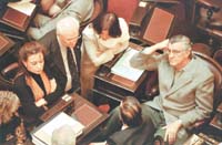Baglini, quien ayer apareció unos minutos en el Senado durante la recepción que realizó el Congreso al presidente chileno, Ricardo Lagos, no habló de la frustrada sesión. Prefirió concentrarse en las causas que lo llevaron a no sentarse en su banca e hizo referencia a las “irregularidades” que se cometieron durante la reunión de la Comisión de Asuntos Constitucionales que preside Fernández de Kirch-ner. Se queja de que el dictamen que emitió la comisión donde se rechaza la recusación que presentó Moliné contra la senadora “tiene la firma de un senador que no estuvo presente”. El senador en cuestión es Jorge Yoma, quien efectivamente no estuvo por encontrarse enfermo. Lo que no dice Baglini es que nada prohíbe la posibilidad de que dicho dictamen sea enviado al domicilio del legislador.