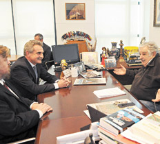 El presidente uruguayo, José Mujica, recibió ayer al ministro de Defensa argentino, Agustín Ro-ssi, y le reiteró su “firme apoyo y solidaridad” en esta causa, que ya había manifestado públicamente un día antes. Del encuentro también participó el ministro de Defensa de ese país, Eleuterio Fernández Huidobro, quien expresó su “solidaridad con la Argentina” ante lo que llamó un “golpe del crimen organizado” y “del sistema financiero” globalizado. “Nos puede pasar a cualquiera de nosotros”, sostuvo el funcionario.